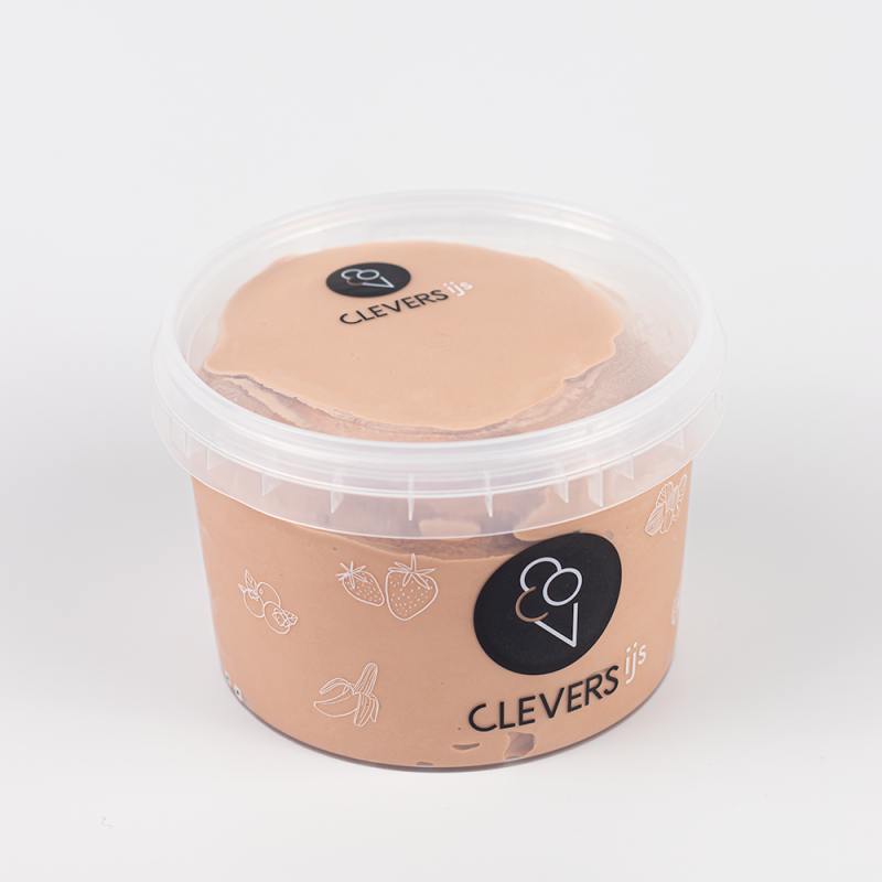 water, suiker, slagroom (melk (incl lactose)), volle melkpoeder (melk (incl lactose), magere melkpoeder (melk (incl lactose), roompoeder (melk (incl lactose)), guargom, johannesbroodpitmeel, dextrose, mono- en diglyceride van vetzuren, hazelnoten (noten), sorbitol, natuurlijk aroma, boter (melk (incl lactose)), carrogeen.