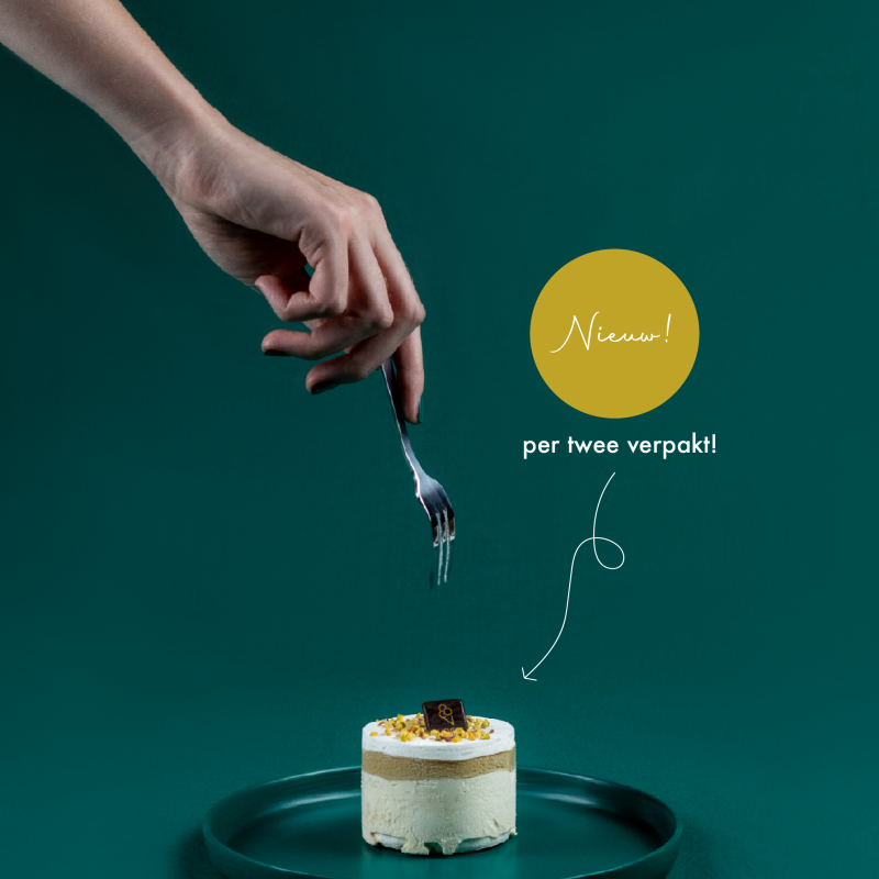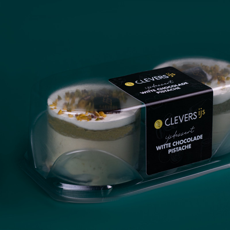 NIEUW! Zijdezacht wit chocolade pistache-ijs met een populaire topping van pistache.
